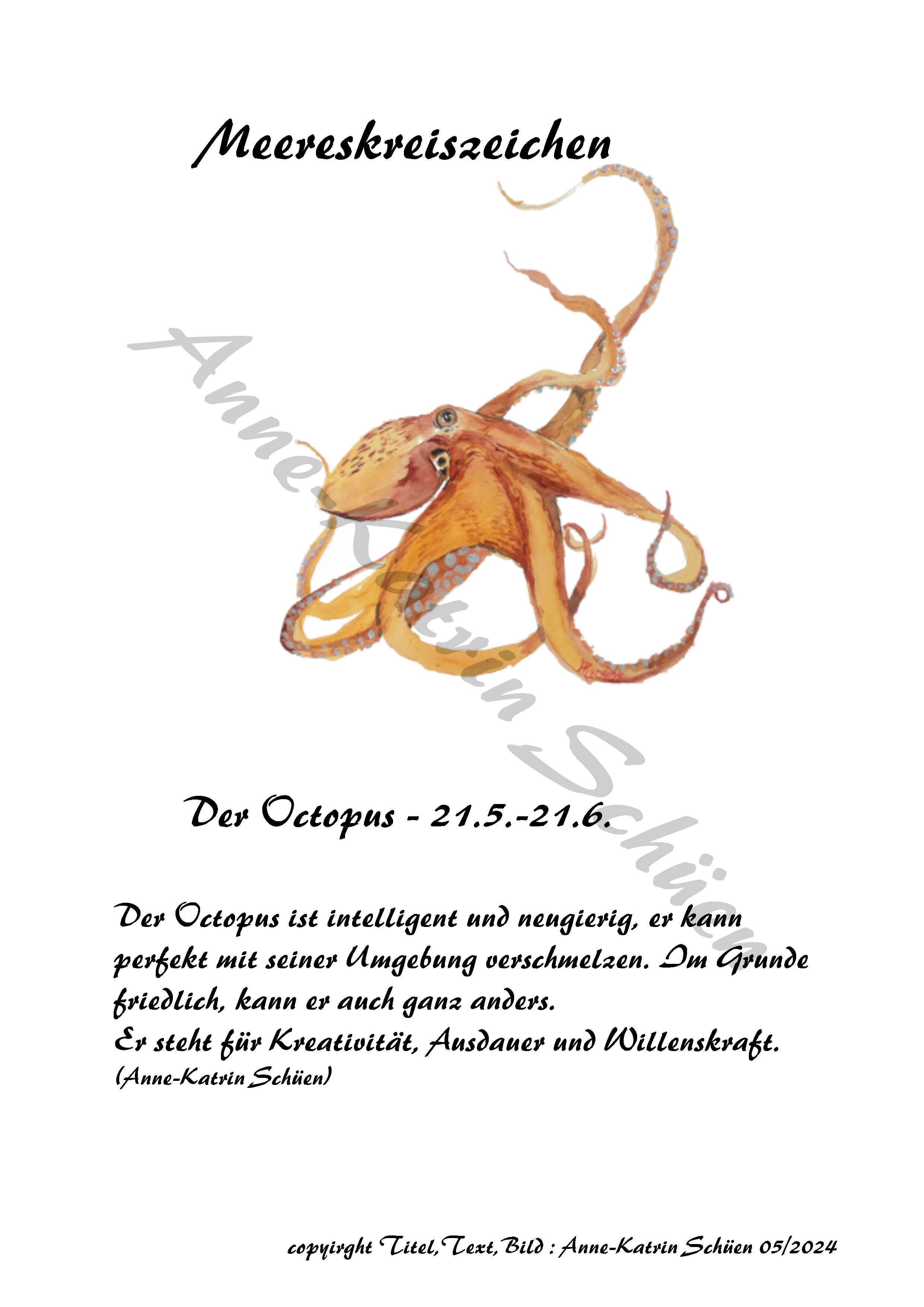 in der Rubrik Meereskreiszeichen – findest Du mein neues Produkt, meine Meereskreiszeichen, diese habe ich in einem langen Jahr intensiver, konzentrierter Arbeit entwickelt. Diese sind zur Zeit als A3 und A4 verfügbar, oder aber in A5 ohne den Text.
