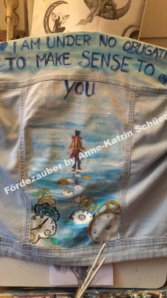Und dann sind da noch die Kunden. die mir das Vertrauen entgegen gebracht haben, ihre ganz persönliche Jacke zu malen – Danke – Ich habe wirklich schon viele schöne Motive malen dürfen und eine handbemalte Jeansjacke ist wirklich ein besonderes Stück. Und für mich ist es eine besondere Freude eine ganz persönlich Jacke zu malen. Auf dieser Statement Jacke kann alles sein was Du Dir wünschst.